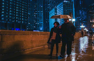 Chicago celebrates with fireworks NY 2019. Spectators on Michigan Ave on a rainy evening ring in the New Year Chicago style. Journey with me downtown to the big party, this footage are the highlights of my trip on December 31 2018. See the people walking to the fireworks display, couples, families, kids, teenagers, workers.